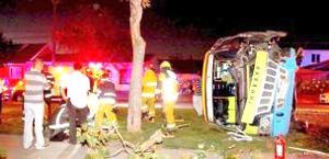 Volcamiento de micro dejó tres heridos anoche
