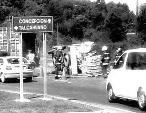 Camión volcó y derramó productos químicos