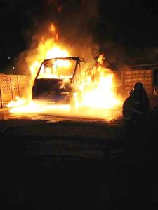 Llamas arrasan con micro estacionada en paradero de la empresa Las Bahías