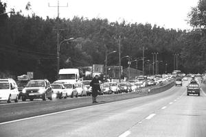 Viaje de Tomé a Dichato tarda el doble por tacos