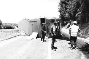 Camión volcó en medio de la Ruta de la Madera
