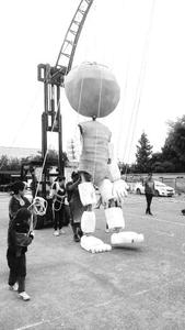 Muñeco gigante se levanta para fiesta