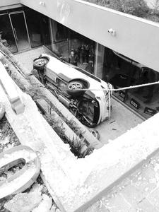 Auto termina en el subterráneo de edificio tras una persecución