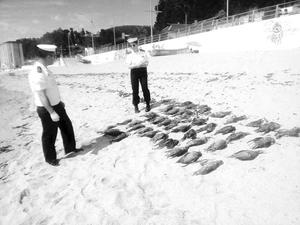 Detectan aves muertas y fragata portuguesa en la playa Bellavista