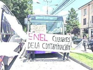 Manifestantes funan al bus eléctrico penquista