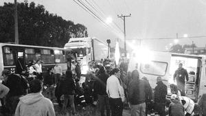 Microbus y camión colisionaron de frente