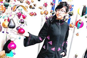 Artesana uruguaya deslumbra con sus coloridos móviles de calabaza