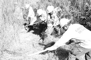 soldados construyen cortafuegos