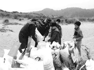 Carabineros y escolares limpian playa en Lebu