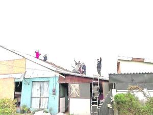 Estudiantes instalan techo que se llevó el temporal en vivienda de Cruz del Sur