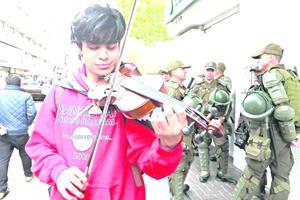 Violinista en el Paseo Peatonal: "Regalo paz"