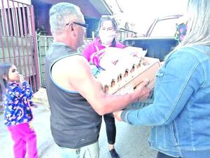 Con cajas de alimentos ayudan a sus vecinos