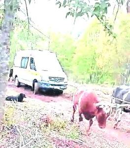 Bueyes liberaron a ambulancia