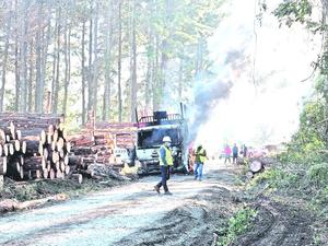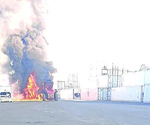 Susto causó grúa que se quemó en Coronel