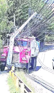 Camión chocó poste y provocó corte de luz