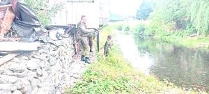 Ayudan a un hombre en situación calle en un río