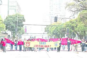 Personal Samu marchó por el centro penquista