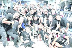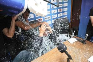 Técnico del campeón terminó empapado